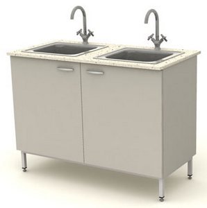 тумба металл; 2 раковины полипропилен, 2 смесителя |